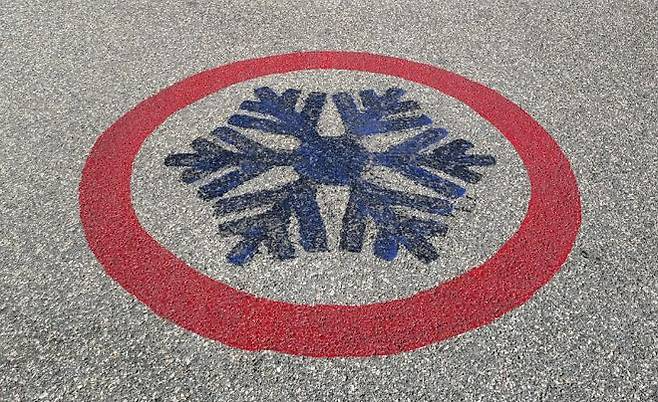 결빙 시 드러나는 감응형 노면표시.ⓒ행정안전부 제공겨울철(11∼3월)엔 제설차량을 긴급자동차로 지정하고, 이들 차량이 경광등·사이렌 사용과 긴급차로로 통행할 수 있도록 해 제설작업 지연을 방지한다.