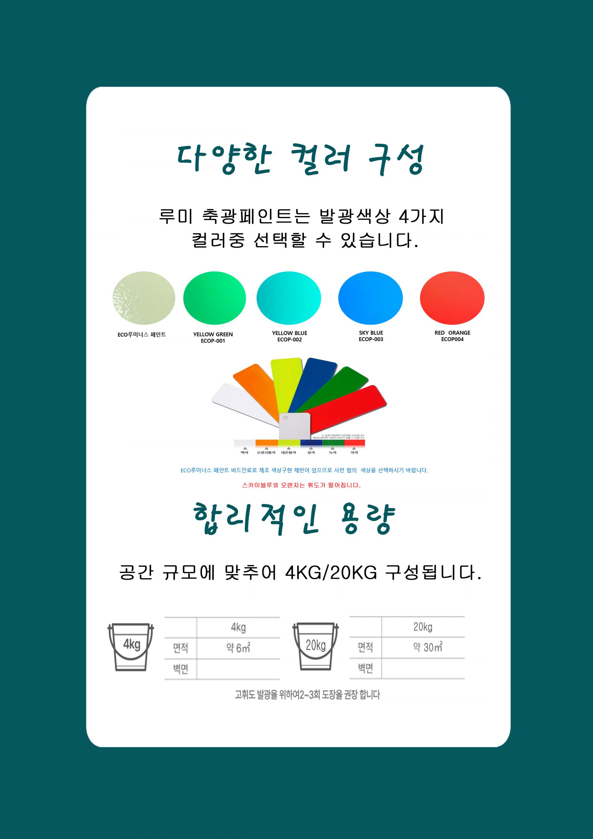 에코루미(축광) 페인트는 수년간의 연구와 개발의 결과입니다.