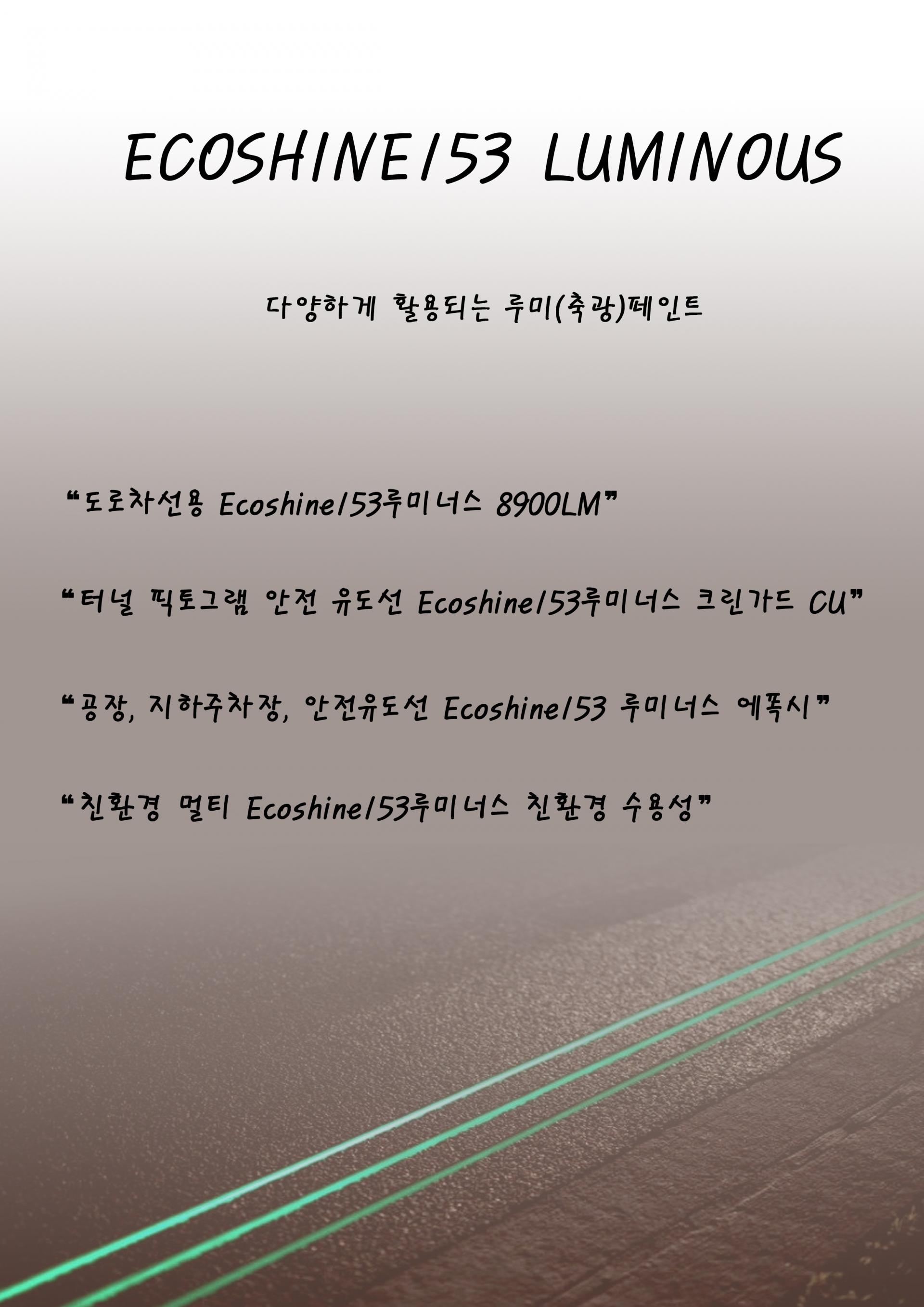 ECOSHINE153LUMINOUS 에코루미(축광)페인트 은 야간에 10시간 동안 조명을 밝힐 수 있는 최초의 축광 도로 페인트(클래스 G,KS S ISO 17398 표준) 입니다